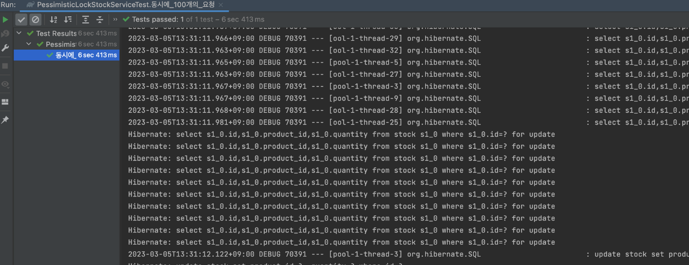 select 문에 for update 문이 함께 실행 되는 것을 확인 할 수 있다.
