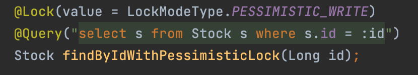 - PESSIMISTIC_WRITE 타입의 @Lock 애노테이션