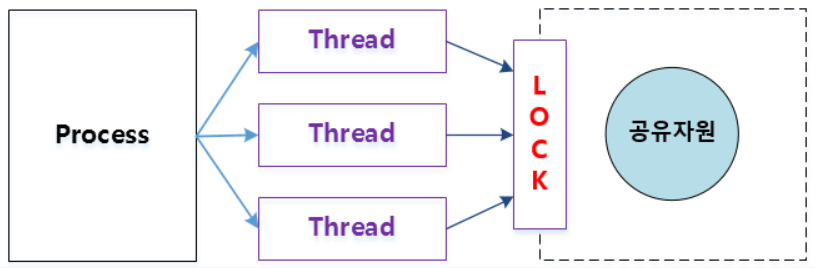 싱글 쓰레드 프로세스의 경우 프로세스 내에 단 하나의 쓰레드만 작업하기 때문에 프로세스의 자원을 가지고 작없하는데 별 문제가 없지만, 멀티 쓰레드 프로세스의 경우 여러 쓰레드가 같은 프로세스 내의 자원을 공유해서 작업하기 때문에 서로의 작업에 영향을 주게 된다. 만일 쓰레드 A가 작업하던 도중에 다른 쓰레드 B에게 제어권이 넘어갔을때, 쓰레드 A가 작업하던 공유 데이터를 쓰레드 B가 임의로 변경 하였다면, 다시 쓰레드 A가 제어권을 받아서 나머지 작업을 받아서 나머지 작업을 마쳤을때 원래 의도 했던 것과 다른 결과를 얻을 수 있다.