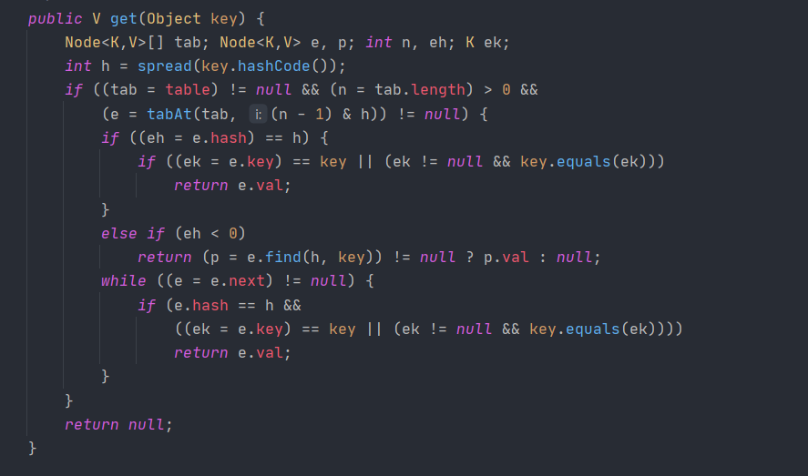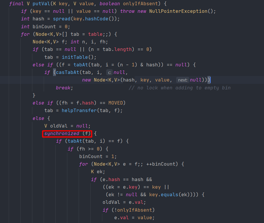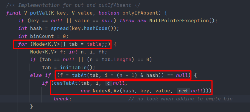 else if ((f = tabAt(tab, i = (n - 1) & hash)) == null) {